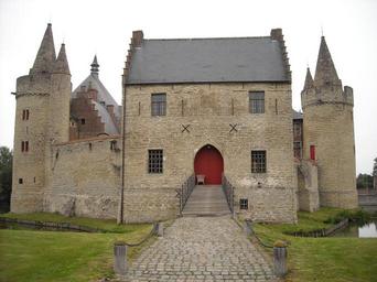 Keywords: castle lock medieval moat fortress gatehouse bridge gangway laarne belgium