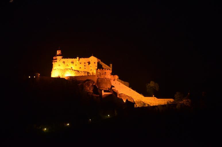 Keywords: castle night photograph middle ages wall fortress lighting dark building night gold