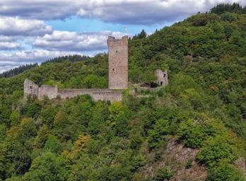 Keywords: castle obernburg manderscheid eifel burgruine blue green