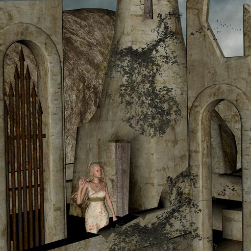 Keywords: castle woman fantasy knight landscape building architecture sky pretty long hair dress pose fairy tales fairytale mood facade ivy mystical epic