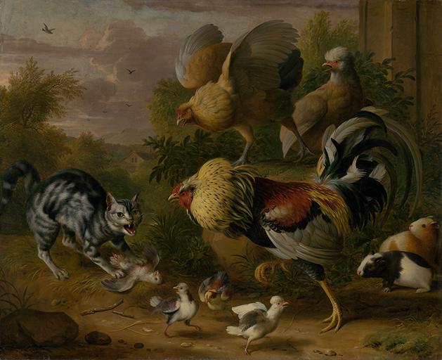 | Keywords: Cat among roosters.jpeg artwork en Cat among roosters sl Mačka medzi kohútmi Q22262418 1710 103 5 x 126 0 cm oil on canvas marking bottom left J Bogdan Slovak National Gallery National Gallery accession number Inventory ID O 3 http //www webumenia sk/dielo/SVK SNG O_3 creator Jakab Bogdány other versions PD-old-70-1923 Animal paintings Jakab Bogdány Paintings in the Slovak National Gallery Cats in art Roosters in art 1710 paintings | ||||