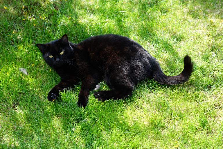 Keywords: cat black animal stone barsik meadow field grass concerns superstition rest night pet eyes tail pfotten