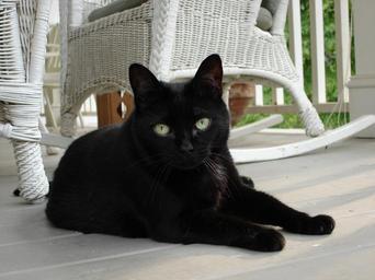Keywords: cat black porch summer feline animal pet eyes domestic
