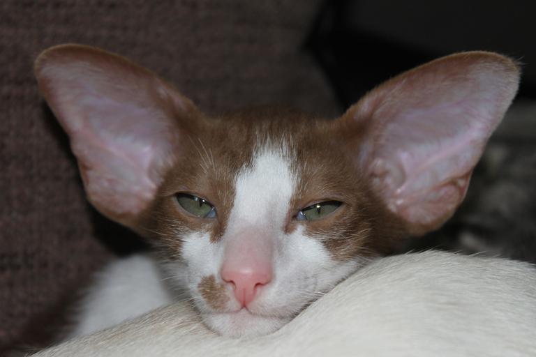 Keywords: cat cat baby tired kitten curious oriental shorthair fur charming animal carnivores cute fluffy hair baby mammal paw pet playful portrait thoroughbred eye white brown