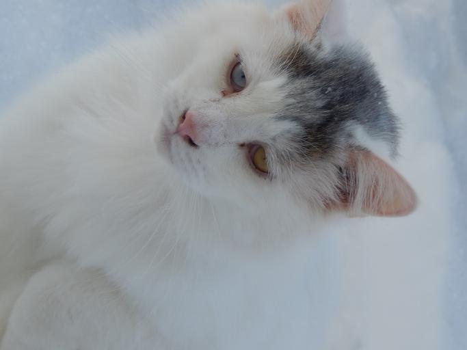 Keywords: cat cat face cat's eyes feline cute cat snow nature animal pet animals