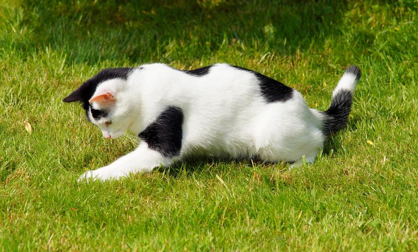 Keywords: cat domestic cat young playful garden out young cat kitten animal hunt black and white