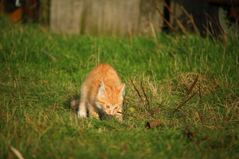 Keywords: cat kitten cat baby meadow autumn grass red mackerel tabby domestic cat red cat