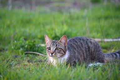 Keywords: cat kitten mieze tiger cat domestic cat grass lauer mackerel