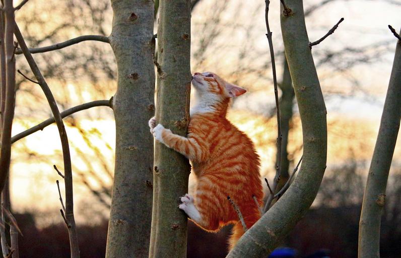 Keywords: cat kitten red mackerel tabby red cat young cat cat baby tree climb