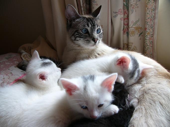 Keywords: cat kitten white together family feline kitty