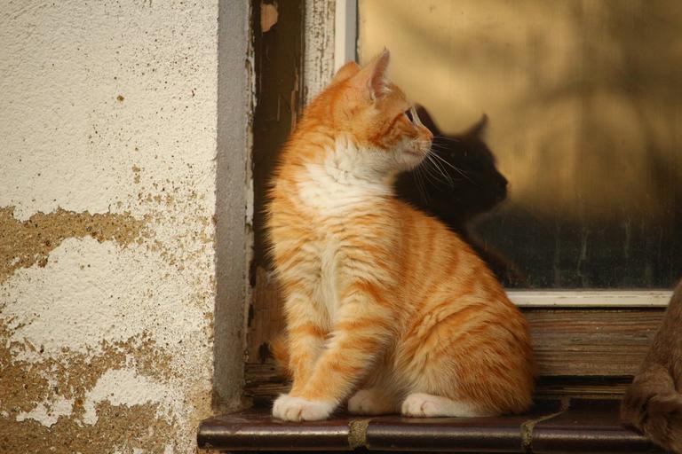 Keywords: cat mirroring window kitten cat baby mieze