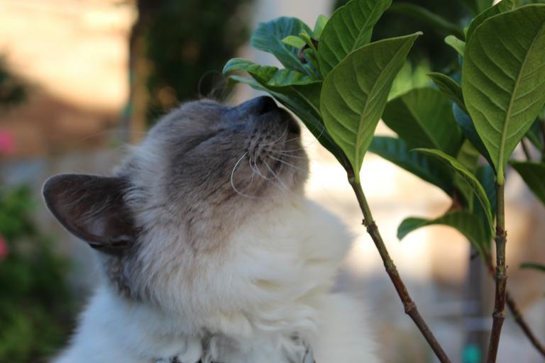 Keywords: cat nature leaf close-up beautiful photo white cat cat nose animals pet feline cat face two color outdoors animal