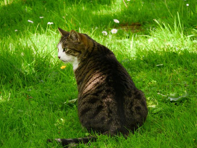 Keywords: cat pet cat's eyes cute cat animal mackerel black and white cat mieze predator mammal animal world fur tiger cat tiger out grass rush nature