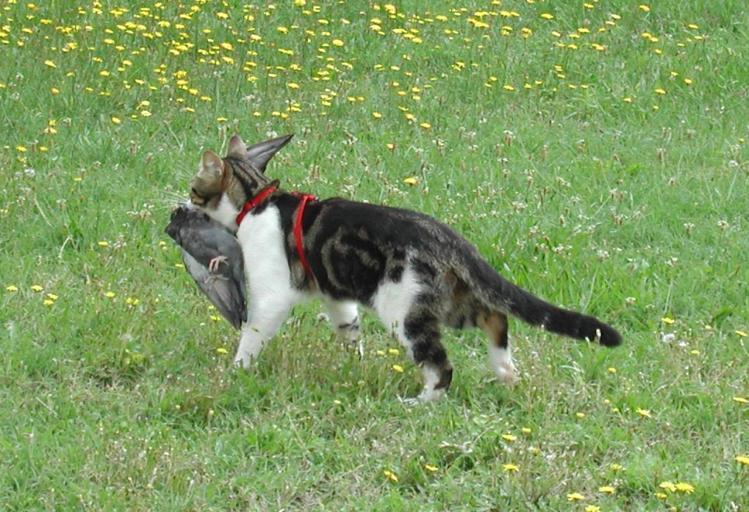 Keywords: Cat&Pigeon.jpg A domestic european cat catching a pigeon see en Cat and fr Chat en Cat fr Chat 2005-12-03 own assumed Yug Hunting cats Feral pigeons dead Pigeons and mammals Cats with wild prey Cats and birds
