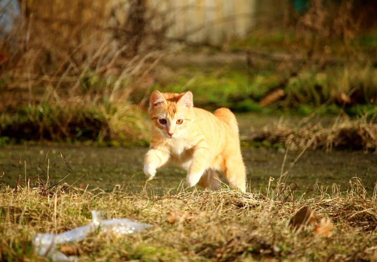 Keywords: cat red mackerel tabby jump play kitten cat baby young cat red cat playful meadow