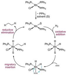 Catalitic cycle for hydrogenation with Wilkinson's catalyst.svg (2510x2813)