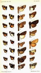 Keywords: CATALOGUE-BM-PLATE CXLVII.jpg en PLATE CXLVII 1 Annaphila arvalis m Vol IX p 473 Oregon H9854 Hy Edw 1875 2 A danistica m p 474 Oregon H9850 Grt 1873 3 A mera m p 474 California H9852 Harv 1875 4 A domina f p 475 California H9852 A mera Harv 1875 5 A pustulata f p 476 Arizona H9853 Hy Edw 1881 6 A divinula f p 476 California H9862 Grt 1878 7 A germana m p 477 California H9868 A decia Grt 1875 8 A decia m p 478 California H9868 Grt 1875 9 A depicta f p 478 California H9866 Grt 1873 10 A lithosina m p 479 California H9863 Hy Edw 1875 11 A miona f p 480 California H9864 Sm 1908 12 A casta f p 482 California H9865 Hy Edw 1890 13 A superba f p 482 California H9870 Hy Edw 1875 14 Janthinea divalis f p 483 Kurdistan 15 Panemeria jocosa m p 487 Sicily 16 Pseudacontia aterrima f p 491 California 17 Parastichtis standfussi m p 497 Sicily 18 P ribbei m p 497 Spain 19 P polyglypha m p 498 Palestine 20 P ona m p 499 Arizona 21 Trachea susquesa m p 500 California 22 T umbrifacta f p 501 Utah 23 T ferida f p 501 Newfoundland 24 Euplexia callichroa f p 502 Victoria 25 E melanops m p 503 S Australia 26 Perigea albistriata f p 505 Peru 27 Centropodia vhitei f p 507 Canaries 28 Pseudohadena presbytis m p 509 E Turkestan 29 Luperina acharis m p 510 Mongolia 30 Chytonix haba f p 516 Ecuador 31 Cerma marina m p 518 Arizona 32 Acronycta phaedra f p 519 E Siberia CATALOGUE OF THE NOCTUIDAE IN THE COLLECTION OF THE BRITISH MUSEUM Sir GEORGE F HAMPSON Bart 1903-1913 PD-old Catalogue of Lepidoptera Phalaenae in the British Museum Vol 4 |