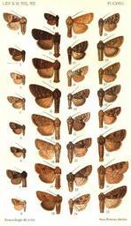 | Keywords: CATALOGUE-BM-PLATE CXVIII.jpg en PLATE CXVIII 1 Oligia diversicolora f Vol VII p 388 Massachusetts H9427 Meropleon diversicolor Morr 1874 2 O leuconephra f p 389 E Siberia 3 O semicana m p 390 New York H9411 Wlk 1865 4 O subjuncta m p 391 Canada H9413 O tonsa Grt 1880 a subjuncta Sm 1898 5 O tonsa f p 392 Nevada H9413 Grt 1880 6 O laevigata f p 392 Colorado H9412 Sm 1898 7 O obtusa m p 396 New Hampshire H9418 Sm 1902 8 O includens m p 396 New York H9434 Spartiniphaga includens Wlk 1858 9 O nyctichroa m p 397 Brazil 10 Agroperina dubitans m p 398 Canada H9367 Wlk 1856 11 A cogitata m p 399 Canada H9367 Agroperina dubitans Wlk 1856 a cogitata Sm 1891 12 A fervida m p 402 Tibet 13 A conradi m p 402 Colorado H9370 Grt 1879 14 A lutosa m p 403 Dakota H9372 Andrews 1877 15 A helva m p 403 New York H9373 Grt 1875 16 A inficita f p 404 Canada H9369 Wlk 1857 17 A morna m p 405 Wyoming H9392 Luperina morna Stkr 1878 18 Oederemia diadela m p 406 W Turkestan 19 Eremobia hilli m p 413 New York H9397 Eremobina hilli Grt 1876 20 E albertina m p 413 Canada H9396 Eremobina claudens Wlk 1857 a albertina Hamp 1908 21 E claudens m p 414 Newfoundland H9396 Eremobina claudens Wlk 1857 22 E unicincta f p 415 Oregon H9396 Eremobina unicincta Sm 1902 23 E tenera m p 415 Alaska 24 E pungeleri m p 416 Palestine 25 E zelleri m p 417 W Turkestan 26 E ferrea m p 419 Italy 27 E mutica m p 420 Armenia 28 E alticola m p 421 Colorado H9385 Crymodes exulis Dup 1836 a alticola Sm 1891 29 Sidemia depravata m p 437 Japan 30 S effusoides m p 439 Peru 31 S subornata m p 443 Mongolia 32 S longula f p 443 Nevada H9383 Crymodes longula Grt 1879 CATALOGUE OF THE NOCTUIDAE IN THE COLLECTION OF THE BRITISH MUSEUM Sir GEORGE F HAMPSON Bart 1903-1913 PD-old Catalogue of Lepidoptera Phalaenae in the British Museum Vol 4 |