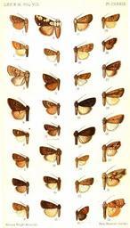 Keywords: CATALOGUE-BM-PLATE CXXXIII.jpg en PLATE CXXXIII 1 Acosmetia tenuipennis m Vol VIII p 412 Formosa 2 A arida f p 414 Egypt 3 Petilampa anotha m p 416 Br Columbia H9642 Protoperigea anotha Dyar 1904 4 P camina m p 417 Colorado H9655 Platyperigea camina Sm 1894 5 Ethiopica cupricolora m p 419 Mozambique 6 E polyastra m p 419 Nigeria 7 E hesperonota f p 420 Br E Africa 8 E micra m p 420 Natal 9 Hypoperigea leprosticta f p 423 Ceylon 10 H turpis m p 424 Madras 11 H haemorrhanta m p 425 Queensland 12 Dysmilichia calamistrata f p 428 Sikhim 13 D perigeta m p 428 Brazil 14 Proxenus xantholopha m p 431 C Colony 15 P dissimilis m p 431 Philippines 16 P xanthopis f p 432 Basutoland 17 P fragosa m p 433 Arizona H9836 Fotella fragosa Grt 1883 18 P distracta m p 433 Mongolia 19 P tenuis m p 434 Queensland 20 P nitens m p 435 Alberta H9647 P miranda Grt 1873 a nitens Dyar 1904 21 P miranda m p 435 New York H9647 Grt 1873 22 P hennia f p 436 Borneo 23 P tristis f p 437 E Siberia 24 Galyula subapicalis m p 440 Jamaica 25 G castra m p 441 Brazil 26 Micrathetis canifimbria m p 442 Brazil 27 Platysenta temecula m p 447 Arizona H9691 Barnes 1905 28 P discistriga m p 448 Colorado H9692 Sm 1894 29 P albipuncta m p 449 Texas H9690 P videns Gn 1852 a albipuncta Sm 1902 30 Gonodes dianiphea m p 450 Brazil 31 G albifissa f p 451 Peru 32 G obliqua m p 452 Colombia CATALOGUE OF THE NOCTUIDAE IN THE COLLECTION OF THE BRITISH MUSEUM Sir GEORGE F HAMPSON Bart 1903-1913 PD-old Catalogue of Lepidoptera Phalaenae in the British Museum Vol 4 |