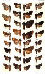 | Keywords: CATALOGUE-BM-PLATE LXXXV.jpg en PLATE LXXXV 1 Hadula longicornis m Vol V p 246 E Turkestan 2 H insolita m p 248 W Turkestan 3 Nephelistis furva m p 252 Mexico 4 Hydroeciodes pexa m p 254 Mexico 5 H azteca f p 256 Mexico 6 H cauta f p 256 Costa Rica 7 H leucogramma f p 257 Brazil 8 Chabuata notata m p 259 Illinois H10628 Tricholita notata Stkr 1898 9 C fistula m p 261 California H10630 Tricholita fistula Harv 1878 10 C mutina m p 261 Mexico 11 C inconspicua m p 261 Arizona H10593 Hexorthodes inconspicua Grt 1883 12 C angulifera m p 266 Kashmir 13 C albicosta m p 267 Punjab 14 C ociosa m p 269 Ecuador 15 C amoeba f p 269 Br E Africa 16 C dulcinea m p 270 Chili 17 C subsocia m p 271 Brazil 18 C albirena f p 271 Brazil 19 C amp1a f p 272 Brazil 20 C rectilinea f p 273 Argentina 21 Lasianobia decreta m p 276 Tibet 22 Manobia grisea m p 277 Japan 23 Hysia inconstans f p 279 New Zealand 24 H senatoria m p 281 Arizona H10603 Hexorthodes senatoria Sm 1900 25 H gussata m p 282 Alberta H10493 Orthosia segregata Sm 1893 26 H niphadopa f p 283 Hawaii 27 H anthracias m p 284 Hawaii 28 H violascens f p 286 N China 29 H modesta m p 286 New York H10569 Ulolonche modesta Morr 1874 30 H disticha m p 287 Texas H10573 Ulolonche disticha Morr 1875 31 H dilecta m p 287 Colorado H10572 Ulolonche dilecta Hy Edw 1885 32 H fasciata m p 288 New Mexico H10575 Ulolonche fasciata Grt 1873 CATALOGUE OF THE NOCTUIDAE IN THE COLLECTION OF THE BRITISH MUSEUM Sir GEORGE F HAMPSON Bart 1903-1913 PD-old Catalogue of Lepidoptera Phalaenae in the British Museum Vol 4 |