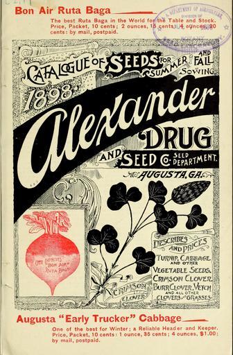 | Keywords: Catalogue of seeds for summer and fall sowing (16878250388).jpg  Augusta Early Trucker Cabbage - <br> One of the best for Winter; a Reliable Header and Keeper <br> Price Packet 10 cents 1 ounce 35 cents ; 4 ounces 1 00; <br> by mail postpaid 43935808 150288 78742 Title Page http //www biodiversitylibrary org/page/43935808 1898 10 5962/bhl title 78742 Alexander Seed Co ; Henry G Gilbert Nursery and Seed Trade Catalog Collection Biodiversity Heritage Library Catalogue of seeds for summer and fall sowing Agriculture Catalogs Equipment and supplies Fruit Seeds Vegetables U S Department of Agriculture National Agricultural Library bhl page 43935808 dc identifier http //biodiversitylibrary org/page/43935808 bhlGardenStories u s department of agriculture national agricultural library bhlgardenstories Information field Flickr posted date ISOdate 2015-04-07 CC-BY-2 0 BioDivLibrary https //flickr com/photos/61021753 N02/16878250388 2015-08-23 20 51 54 cc-by-2 0 PD-old-70-1923 Photos uploaded from Flickr by Fæ using a script Alexander Seed Co |