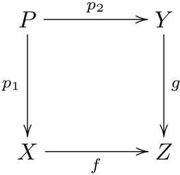 Keywords: Categorical pullback.svg en The commutative square for a categorical pullback of two maps Own Ryan Reich 2009-01-14 File CategoricalPullback-03 png LaTeX source <pre> \documentclass amsart \usepackage amsmath amssymb nopageno \usepackageall xy \begin document \begin equation \xymatrix C+2em R+2em P \ard_ p_1 \arr p_2 Y \ard g \\ X \arr_ f Z \end equation \end document </pre> Commutative squares Images with LaTeX source code |