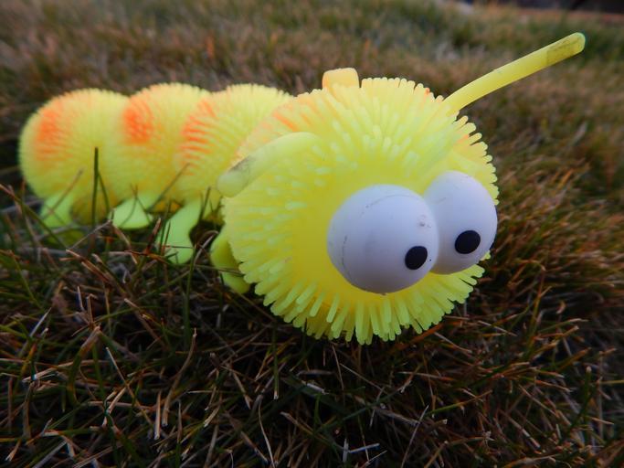 Keywords: caterpillar toy yellow insect bug eyes nature grass crawl crawling fun cute worm animal plastic