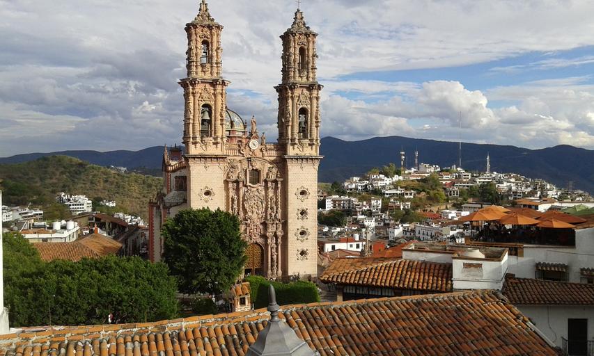 Keywords: cathedral church monument tourism history religion parish view village taxco sky travel colonial architecture