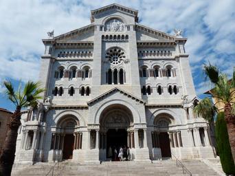 Keywords: cathedral notre dame immaculée monaco city main church principality of monaco archbishop holy sepulchre grimaldi church dom house of worship neo romani shear style neo romanesque west facade facade building architecture