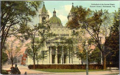 | Keywords: vcu libraries vculibraries vcu digital collections vcudigitalcollections outdoor Description: This splendid edifice, erected at a cost of over $300,000. was the gift of Thomas F. Ryan. It was consecrated in the Fall of 1906 with impressive ceremonies. Situated in the heart of the residential section, overlooking Monroe Park, its symmetrical columns, graceful towers, and lofty dome command general admiration. In the rear of the building, and connected with it by a cloistered walk, is the episcopal residence of the Bishop of the Diocese of Virginia. Manufacturer: Southern Bargain House, Richmond, Va. Date Postmarked: Not postmarked. Rights: This item is in the public domain. Acknowledgement of the Virginia Commonwealth University Libraries as a source is requested. Reference URL: dig.library.vcu.edu/u?/postcard,551 Collection: Rarely Seen Richmond: Early twentieth century Richmond as seen through vintage postcards Description: This splendid edifice, erected at a cost of over $300,000. was the gift of Thomas F. Ryan. It was consecrated in the Fall of 1906 with impressive ceremonies. Situated in the heart of the residential section, overlooking Monroe Park, its symmetrical columns, graceful towers, and lofty dome command general admiration. In the rear of the building, and connected with it by a cloistered walk, is the episcopal residence of the Bishop of the Diocese of Virginia. Manufacturer: Southern Bargain House, Richmond, Va. Date Postmarked: Not postmarked. Rights: This item is in the public domain. Acknowledgement of the Virginia Commonwealth University Libraries as a source is requested. Reference URL: dig.library.vcu.edu/u?/postcard,551 Collection: Rarely Seen Richmond: Early twentieth century Richmond as seen through vintage postcards |