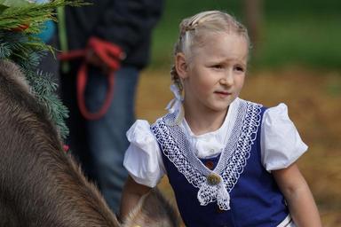 Keywords: cattle show customs appenzellerland appenzell stone calf award floral decorations floral wreath costume young peasant woman girl tradition agriculture switzerland