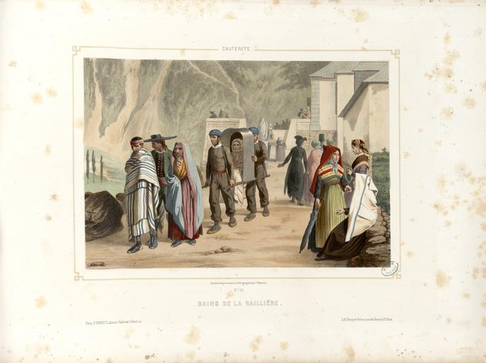 Keywords: Cauterets - Bains de la Raillière - Fonds Ancely - B315556101 A MONTAUT 025.jpg Titre calligraphié et illustré à l'encre sur feuille de calque Fait partie de deux albums réunis et publiés par F Sinnett à Paris Lith de Becquet frères à Paris Les planches du premier album ont été dessinées par Montaut et lithographiées par Bargue Les planches du second album ont été dessinées et lithographiées par Charles Maurice Le titre du premier album est lithographié Le premier album est signalé dans la bibliographie pyrénéiste de Jacques Labarère comme étant très rare Pièce jointe photocopie en n et b d'une lithographie de Montaut intitulée Col de Tortes - Traversée de la montagne Ancely René 1876 - 1966 Possesseur fre public domain domaine public B315556101_A_MONTAUT_025 jpg image/jpeg 1 f de pl lithogr ; 30 cm oblong Sinnet F Éditeur Becquet 18 - 18 ; imprimeur Lithographe http //numerique bibliotheque toulouse fr/collect/general/index/assoc//ark /74899/B315556101_A_MONTAUT_025 dir/B315556101_A_MONTAUT_025 jpg A-MONTAUT 22 Ch Maurice http //catalogues toulouse fr/web2/tramp2 exe/do_keyword_search/log_in setting_key BMT1 servers 1home query p001749 vignette http //numerique bibliotheque toulouse fr/collect/general/index/assoc//ark /74899/B315556101_A_MONTAUT_025 dir/B315556101_A_MONTAUT_025_thumb jpeg by 1852 Cauterets - Bains de la Raillière B315556101_A_MONTAUT_025 lithography - print - colors - color lithograph Women in art Capes Female clothing Vests Jackets Dogs in art Needlework Berets in art Dresses in art Discussions Trousers in art Aprons in art French national costumes Caps in art Crowds in art Hats in art Shoes in art Umbrellas in art Male clothing Roads in art Men in art Human-powered litters in art Cauterets Shawls Children in art |