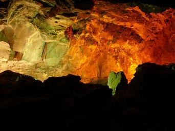 Keywords: cave light rock nature dark orange mystical bright red mysterious grotto darkness colorful color farbenspiel stone reddish