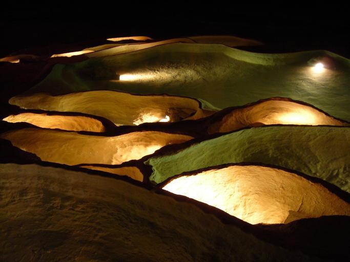 Keywords: cave stalactite lime karst illuminated speleothems calcium deposits water basin drip water cold cool cavity figures fabric france ardeche