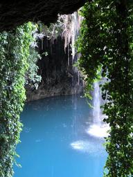 Keywords: cave waterfall ivy blue green