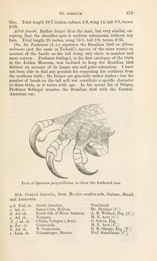 Keywords: CBBM02 279.png Syrnium perspicillatum <small>Lath </small> Pulsatrix perspicillata <small> Latham 1790 </small> en Spectacled Owl left foot from lateral Catalogue of the birds in the British Museum http //www archive org/details/catalogueofbirds02brit Vol 2 Page 279 1875 creator John Gerrard Keulemans Richard Bowdler Sharpe text PD-old-100 CBBM02 Pulsatrix perspicillata illustrations Strigidae feet |
