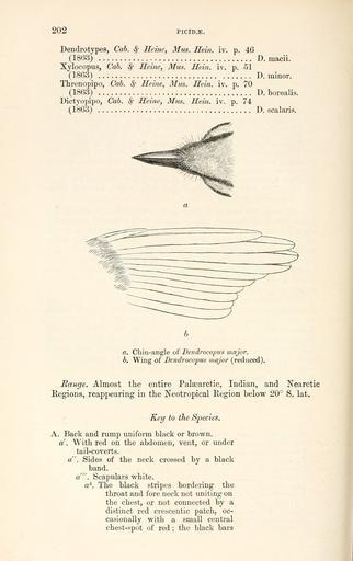 | Keywords: CBBM18 202.png Dendrocopus major <small> Linn </small> Dendrocopos major <small> Linnaeus 1758 </small> en Great Spotted Woodpecker beak above and wing below from ventral Catalogue of the birds in the British Museum http //www archive org/details/catalogueofbirds18brit Vol 18 Page 202 1890 Peter Smit artist Edward Hargitt text PD-old CBBM18 Dendrocopos major anatomy Piciformes beaks Piciformes wings | ||||