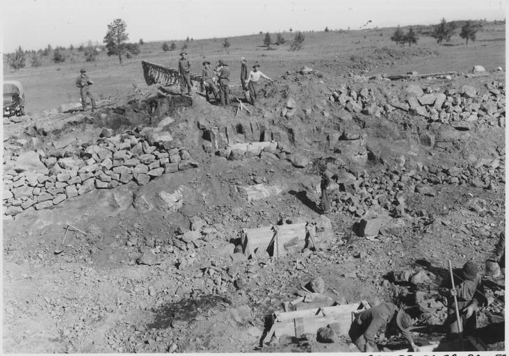 | Keywords: CCC Camps BR-88, 89 and 90, Deschutes Project, Oregon, CCC enrolleess placing concrete footing for farm flume... - NARA - 293605.jpg Scope and content General notes 293605 Local identifier Department of the Interior Bureau of Reclamation Civilian Conservation Corps Division 1937 - 1942 NARA's Rocky Mountain Region Denver NRGA Building 48 Denver Federal Center West 6th Avenue and Kipling Street Denver CO 80225-0307 1941-03-06 Record group Record Group 115 Records of the Bureau of Reclamation 1889 - 2008 Record group ARC 444 Civilian Conservation Corps Photographs and Related Correspondence compiled 1939 - 1941 Series ARC 293494 File unit File unit ARC Variant control numbers NAIL Control Number NRG-115-CCCPHOWDC31-BR88899050 Other versions <gallery> File CCC_Camps_BR-88 _89_and_90 _Deschutes_Project _Oregon _CCC_enrolleess_placing_concrete_footing_for_farm_flume _-_NARA_-_293605 tif tif File CCC_Camps_BR-88 _89_and_90 _Deschutes_Project _Oregon _CCC_enrolleess_placing_concrete_footing_for_farm_flume _-_NARA_-_293605 jpg jpg </gallery> NARA-cooperation PD-USGov Deschutes Project Civilian Conservation Corps Flumes in the United States Concrete workers 1941 in Oregon March 1941 CCC Camp BR-88 89 and 90 NARA images of Oregon Black and white photographs of Oregon |