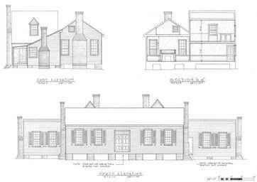 Keywords: Cedarwood Plantation.PNG Cedarwood Greensboro vicinity Hale County AL A portion of measured drawing 4 of 6 by Nicholas H Holmes The front elevation and side elevations HABS note of significance Built between c 1818 and 1846 by Joseph Blodgett Stickney this house represents a typical Alabama house of the early nineteenth century with steeply pitched gable roof additions and flanking vernacular Greek Revival wings of New England origins Stickney who came from Boston purchased the property in 1817 from General Desonette Le Gabre and farmed it until his death in 1846 The house is in deteriorated condition and is expected to be moved to a new location and restored by Edward P Whatley Jr a descendant of Stickney New location Cedarwood Rd Moundville Alabama Coordinates 32 916293 N 87 646415 W Historic American Buildings Survey Library of Congress Prints Photographs Division HABS or HAER or HALS Survey number HABS AL-843 > 1933 Nicholas H Holmes PD-USGov ALA 33-GREBO V 1- Houses in Hale County Alabama Plantation houses in Alabama 1840s houses in Alabama Houses built in the United States in 1846 Built in Alabama in 1846
