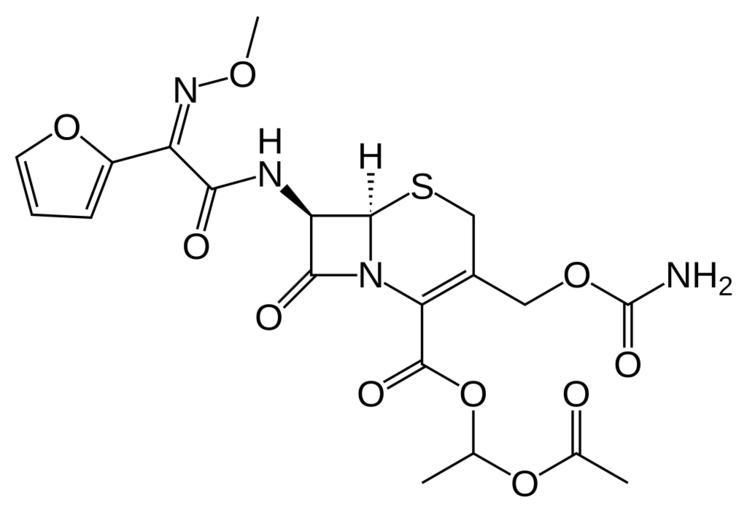 Keywords: Cefuroxime axetil.svg validSVG Skeletal formula of cefuroxime axetil a prodrug of cefuroxime Created using http //www acdlabs com/download/chemsk html ACD/ChemSketch 10 0 and Inkscape Own 2008-08-24 Fvasconcellos Cefuroxime Carboxylate esters Prodrugs |