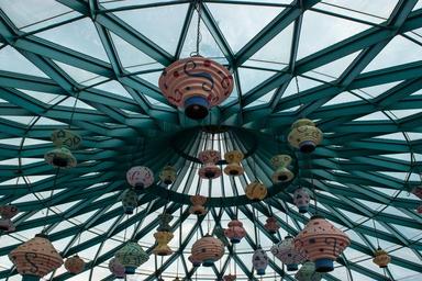 Keywords: ceiling design modernity perspective cups color fun