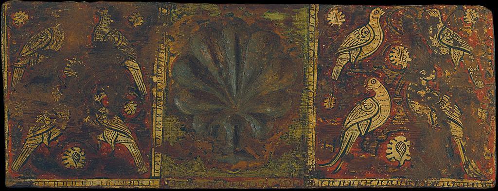 | Keywords: Ceiling panel with palm leaf and birds - Google Art Project.jpg  ~ 1300 466155 Unknown /collection/museu-nacional-dart-de-catalunya/artwork/ceiling-panel-with-palm-leaf-and-birds-unknown/591635/ author /collection/museu-nacional-dart-de-catalunya/ Museu Nacional d'Art de Catalunya - MNAC Barcelona 497131 http //www mnac cat/ 12/28/2011 4 44 34 PM /collection/museu-nacional-dart-de-catalunya/artwork/ceiling-panel-with-palm-leaf-and-birds-unknown/591635/ 1300 Animal figure Plant motif Tempera on wood 262 591635 True 1300 Around 1300 3/24/2012 6 32 36 AM 113152-000 http //art mnac cat/fitxatecnica html;jsessionid inventoryNumber 113152-000 lang en Museu Nacional d'Art de Catalunya Painting 1300 1310 Barcelona Provenance w701 x h262 x d18 cm Around 1300 False 2 5989847715736 Object ceiling-panel-with-palm-leaf-and-birds-unknown Ceiling panel with palm leaf and birds c 701 Acquisition of Palau del Marquès de Llió by Barcelona City Council 1953; the paintings entered the Museum in 1962 113152-000 Tempera on wood Animal figure Plant motif special url_id 3wFrnMahvbiM1w PD-old-100 Gothic paintings in the Museu Nacional d'Art de Catalunya Google Art Project works by unknown artist |