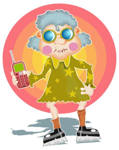 Keywords: cell phone comic characters communication female grandma grandmother granny groovy mobile old woman