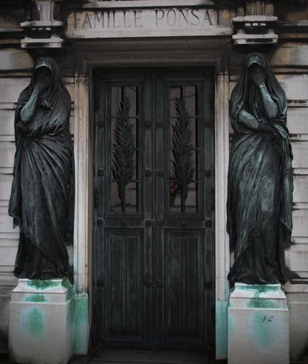 Keywords: cemetery pere-lachaise paris death doors monument statues gray day