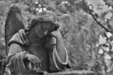 Keywords: cemetery statue stone angel hands sadness death black and white monument memory tombstone