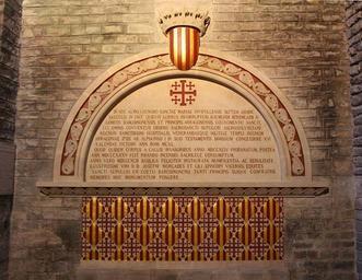 Keywords: Cenotafi-Ramon Berenguer IV.jpg Cenotaph of Ramon Berenguer IV built in 1893 and paid by the Order of the Holy Sepulchre Located in the Ripoll Monastery ca Cenotafi tomba buïda de Ramon Berenguer IV construït el 1893 i pagat pels cavallers del Sant Sepulcre In hoc almo Coenobio Sanctae Mariae Rivipollensis septem abhinc saeculis in pace quievit corpus incorruptum Raimundi Berengarii IV Comitis Barchinonensis et Principis Arragonensis cognomento Sancti cui omnis conventus Ordinis Sacrosancti Sepulcri Hierosolymitani necnon sanctissimi Hospitalis venerandaeque militiae Templi regnum Arragoniae ipsis ab Alphonso I in suo testamento dimissum concessere XVI kalendas Octobr ann MCXL Quod quidem corpus a Gallis invasoribus ann MDCCXCIV profanatum postea ann MDCCCXXXV fuit infando incendio sacrilege consumptum Anno vero MDCCCXCIII Basilica féliciter instaurata munificentia ac sedulitate Illustrissimi viri D D Josephi Morgades et Gili Episcopi Vicensis Equites Sancti Sepulcri ex Coetu Barchinonensi tanti Principis suique confratris memores hoc monumentum posuere Santa Maria de Ripoll 1894 own work all Interior of Monestir de Santa Maria de Ripoll Cenotaph of Ramon Berenguer IV of Barcelona Church monuments in Catalonia 1893 in Catalonia Order of the Holy Sepulchre Pales of Aragon in heraldry Heraldic crowns Latin inscriptions in Catalonia |