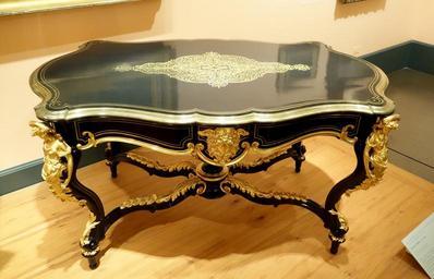 | Keywords: Center Table, attributed to Leon Alexandre Marcotte, New York, c. 1865, ebonized wood, brass, gilded bronze - Brooklyn Museum - DSC09530.JPG en Exhibit in the Brooklyn Museum - Brooklyn New York USA This artwork is in the public domain because the artist died more than 70 years ago Photography was permitted in the museum without restriction 2013-10-30 14 27 48 own Daderot other versions cc-zero Furniture in the Brooklyn Museum Uploaded with UploadWizard Leon Alexandre Marcotte | ||||