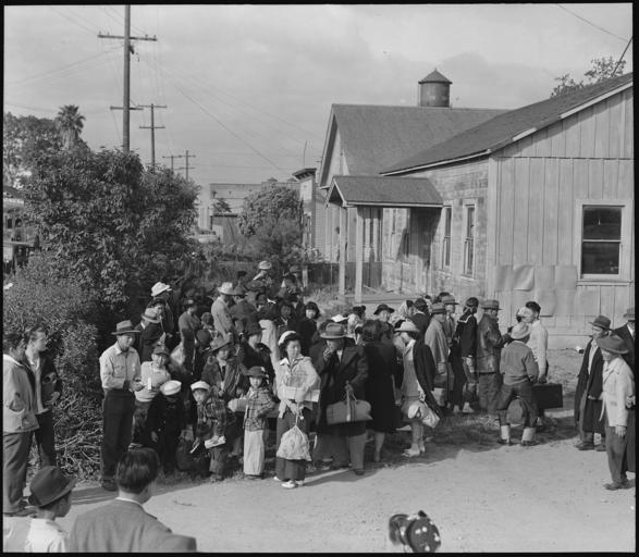 | Keywords: Centerville, California. Farm families of Japanese ancestry await the evacuation buses which will t . . . - NARA - 537577.jpg Scope and content The full caption for this photograph reads Centerville California Farm families of Japanese ancestry await the evacuation buses which will take them to the Tanforan Assembly center along with 595 other evacuees from this district under Civilian Exclusion Order Number 34 General notes 537577 Local identifier 210-G-C230 Department of the Interior War Relocation Authority 02/16/1944 - 06/30/1946 NARA-Author Lange Dorothea 1895-1965 Photographer 1372774 <br /> Still Picture Records Section Special Media Archives Services Division NWCS-S National Archives at College Park 8601 Adelphi Road College Park MD 20740-6001 1942-05-09 Record group Record Group 210 Records of the War Relocation Authority 1941 - 1989 Record group ARC 537 Central Photographic File of the War Relocation Authority compiled 1942 - 1945 Series ARC 536000 File unit File unit ARC Variant control numbers NAIL Control Number NWDNS-210-G-C230 Other versions <gallery> File Centerville _California _Farm_families_of_Japanese_ancestry_await_the_evacuation_buses_which_will_t_ _ _ _-_NARA_-_537577 tif tif File Centerville _California _Farm_families_of_Japanese_ancestry_await_the_evacuation_buses_which_will_t_ _ _ _-_NARA_-_537577 jpg jpg </gallery> NARA-cooperation PD-USGov Japanese American internment processing in Centerville Alameda County California Dorothea Lange |