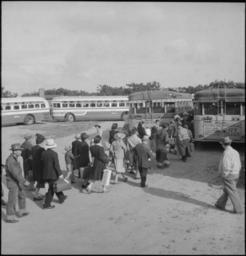 Keywords: Centerville, California. Members of farm family board evacuation buses. Evacuees of Japanese ances . . . - NARA - 537585.jpg Scope and content The full caption for this photograph reads Centerville California Members of farm family board evacuation buses Evacuees of Japanese ancestry will be housed in War Relocation Authority centers for the duration General notes 537585 Local identifier 210-G-C238 Department of the Interior War Relocation Authority 02/16/1944 - 06/30/1946 NARA-Author Lange Dorothea 1895-1965 Photographer 1372774 <br /> Still Picture Records Section Special Media Archives Services Division NWCS-S National Archives at College Park 8601 Adelphi Road College Park MD 20740-6001 1942-05-09 Record group Record Group 210 Records of the War Relocation Authority 1941 - 1989 Record group ARC 537 Central Photographic File of the War Relocation Authority compiled 1942 - 1945 Series ARC 536000 File unit File unit ARC Variant control numbers NAIL Control Number NWDNS-210-G-C238 Other versions <gallery> File Centerville _California _Members_of_farm_family_board_evacuation_buses _Evacuees_of_Japanese_ances_ _ _ _-_NARA_-_537585 tif tif File Centerville _California _Members_of_farm_family_board_evacuation_buses _Evacuees_of_Japanese_ances_ _ _ _-_NARA_-_537585 jpg jpg </gallery> NARA-cooperation PD-USGov Japanese American internment processing in Centerville Alameda County California Buses in California Dorothea Lange Black and white photographs of groups |