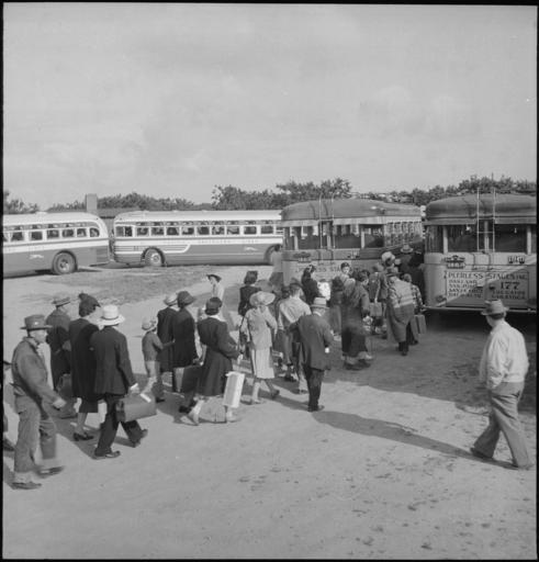 | Keywords: Centerville, California. Members of farm family board evacuation buses. Evacuees of Japanese ances . . . - NARA - 537585.jpg Scope and content The full caption for this photograph reads Centerville California Members of farm family board evacuation buses Evacuees of Japanese ancestry will be housed in War Relocation Authority centers for the duration General notes 537585 Local identifier 210-G-C238 Department of the Interior War Relocation Authority 02/16/1944 - 06/30/1946 NARA-Author Lange Dorothea 1895-1965 Photographer 1372774 <br /> Still Picture Records Section Special Media Archives Services Division NWCS-S National Archives at College Park 8601 Adelphi Road College Park MD 20740-6001 1942-05-09 Record group Record Group 210 Records of the War Relocation Authority 1941 - 1989 Record group ARC 537 Central Photographic File of the War Relocation Authority compiled 1942 - 1945 Series ARC 536000 File unit File unit ARC Variant control numbers NAIL Control Number NWDNS-210-G-C238 Other versions <gallery> File Centerville _California _Members_of_farm_family_board_evacuation_buses _Evacuees_of_Japanese_ances_ _ _ _-_NARA_-_537585 tif tif File Centerville _California _Members_of_farm_family_board_evacuation_buses _Evacuees_of_Japanese_ances_ _ _ _-_NARA_-_537585 jpg jpg </gallery> NARA-cooperation PD-USGov Japanese American internment processing in Centerville Alameda County California Buses in California Dorothea Lange Black and white photographs of groups |